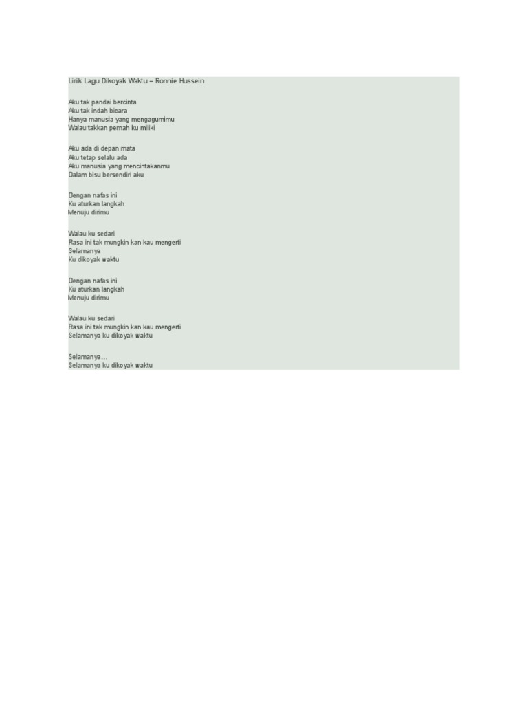 Ronnie Hussein Dikoyak Waktu Lyrics Lyrics My